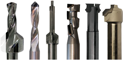 Simple and very complex PCD tooling. Note the solid tipped PCD drill